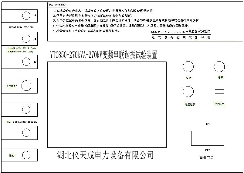變頻串聯諧振試驗裝置是電力工程人員經常需要使用到的儀器,主要用來進行交流耐壓試驗,具有升壓速度快,試驗簡單方便等諸多特點,深受廣大電力工程人員的歡迎,由于其在試驗時電壓較高,因此必須嚴格按使用說明來使用,同時還必須要熟知儀器的面板,本文就以YTC850變頻串聯諧振試驗裝置為例,來詳細介紹變頻串聯諧振試驗裝置的面板。