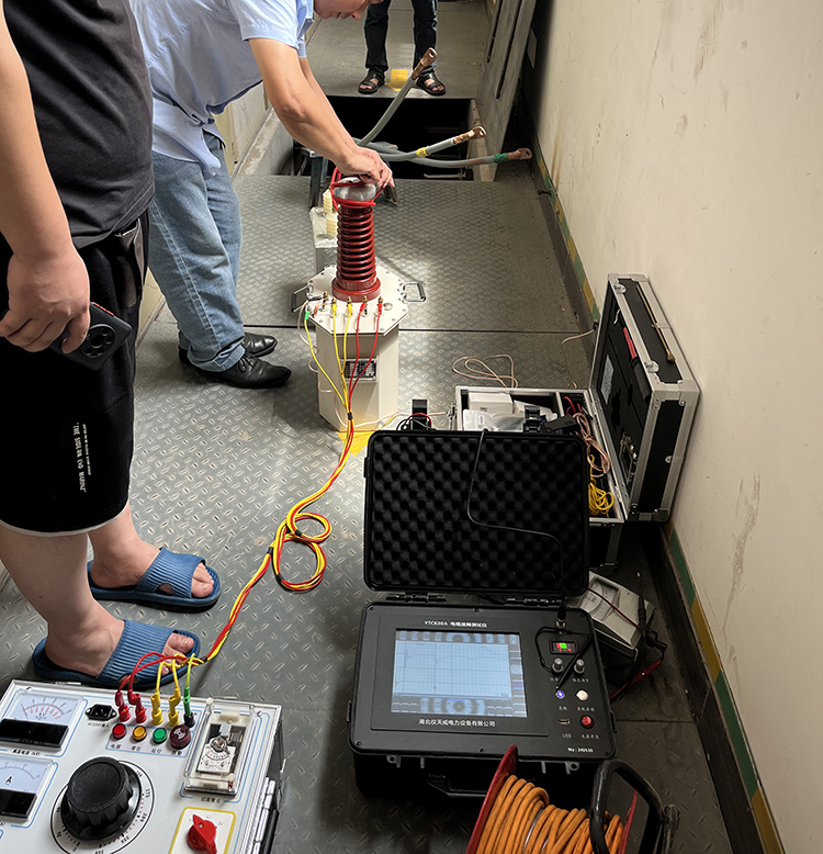 此次客戶那邊遇到的麻煩是電纜在運(yùn)輸電過程中出現(xiàn)了供不上電情況,客戶那邊先自身對電纜做了基本的檢查,一時間也找不準(zhǔn)問題,于是就找到我司去幫忙找出電纜故障問題。我司趕到現(xiàn)場后,先咨詢了客戶相關(guān)的電纜類型的問題,如:電纜是否帶電,是帶鎧電纜還是不帶鎧的等等,摸清電纜的類型等一些相關(guān)信息后,我司技術(shù)人員便開始著手采取相應(yīng)的故障檢測措施了,首先我們做的是默認(rèn)的“低壓脈沖法”來檢測電纜故障情況,我們先是通過波形采樣,得到一個比較適合分析的波形后,然后對波形進(jìn)行分析,從波形我們可以知曉電纜的大致長度,以及故障點(diǎn)發(fā)生的大致一個區(qū)間位置,然后對那個故障區(qū)間位置進(jìn)行更進(jìn)一步的甄別查找,這樣便很大程度地減輕了工作人員查找故障的工作量,不過這次的電纜故障查找有點(diǎn)特殊,通過“低壓脈沖法”并不能很好地找出故障問題,于是后面又采取了“高壓閃絡(luò)法”進(jìn)行檢測,高壓閃絡(luò)過程,便需要利用到高壓升壓試驗(yàn)裝置來對電纜進(jìn)行升壓,從而來得到更明顯的波形。
