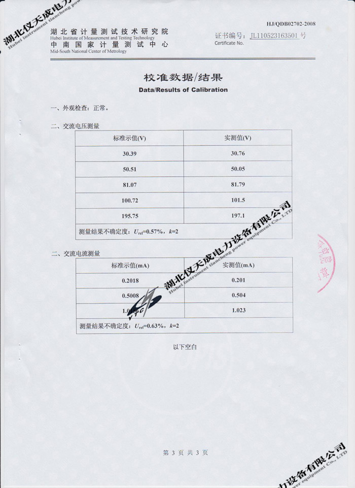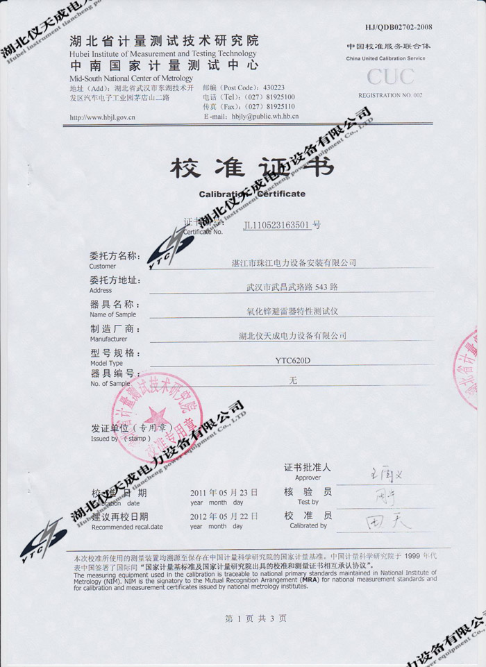 轉(zhuǎn)載:"YTC620D氧化鋅避雷器特性測(cè)試儀的資質(zhì)證書(shū)" 請(qǐng)注明來(lái)源于儀天成電力。 更多技術(shù)問(wèn)題請(qǐng)致電儀天成電力客戶(hù)服務(wù):027-87876585,技術(shù)部專(zhuān)線:027-87876585,在線客服:719388481